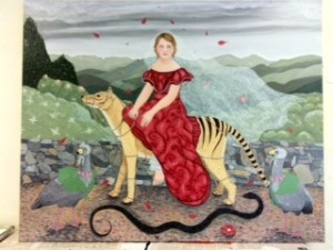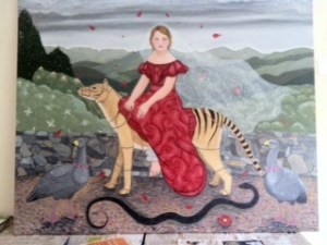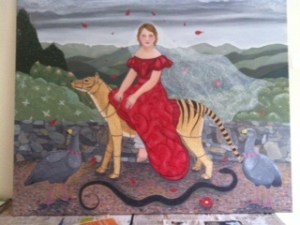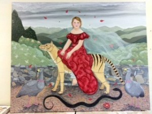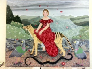 The good news is that my latest painting, the Tiger Bride, is almost finished. The bad news is that the human propensity to fiddle is potentially endless. And so it is that I have been hovering over the canvas with a tiny brush, making minute changes that no-one is likely to notice. Or even if they did notice, it’s doubtful whether it would make any difference to their reading of the image. Still, one is compelled to fiddle, even though there has to be a point where you say ‘enough! the bloody thing is finished’.