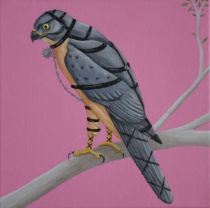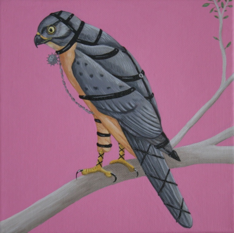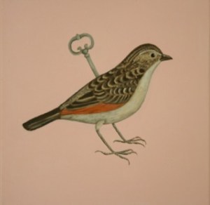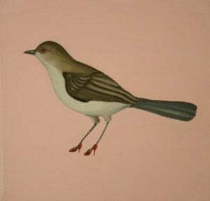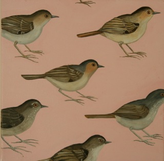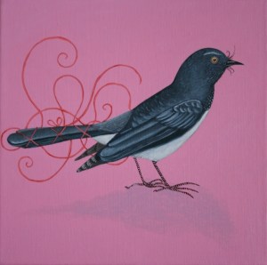 wagtail with bound tail (up against the bird wall series- all bird images 20cm square)